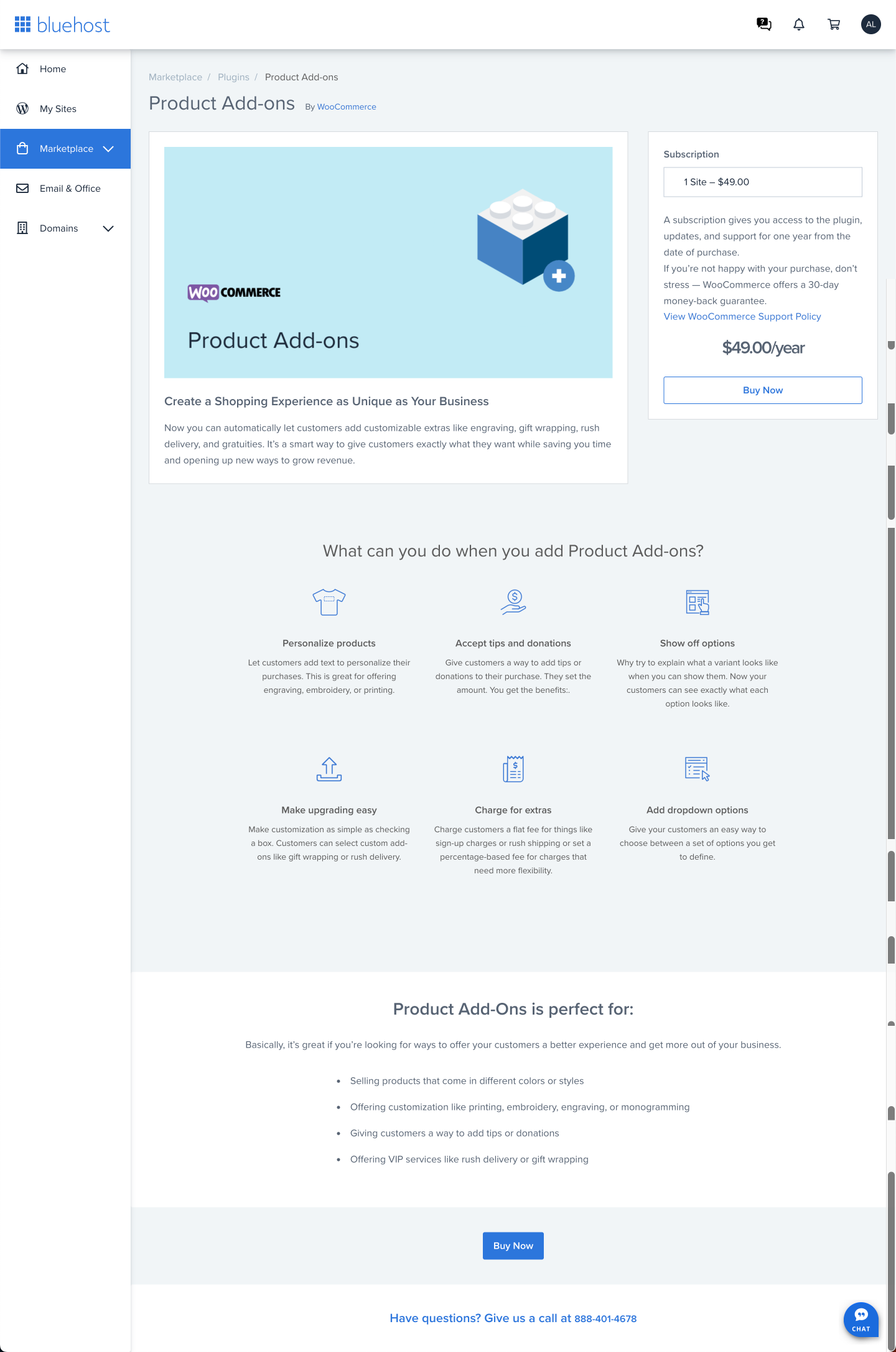 My first project at Bluehost was integrating a 3rd parties products into our marketplace and experience.